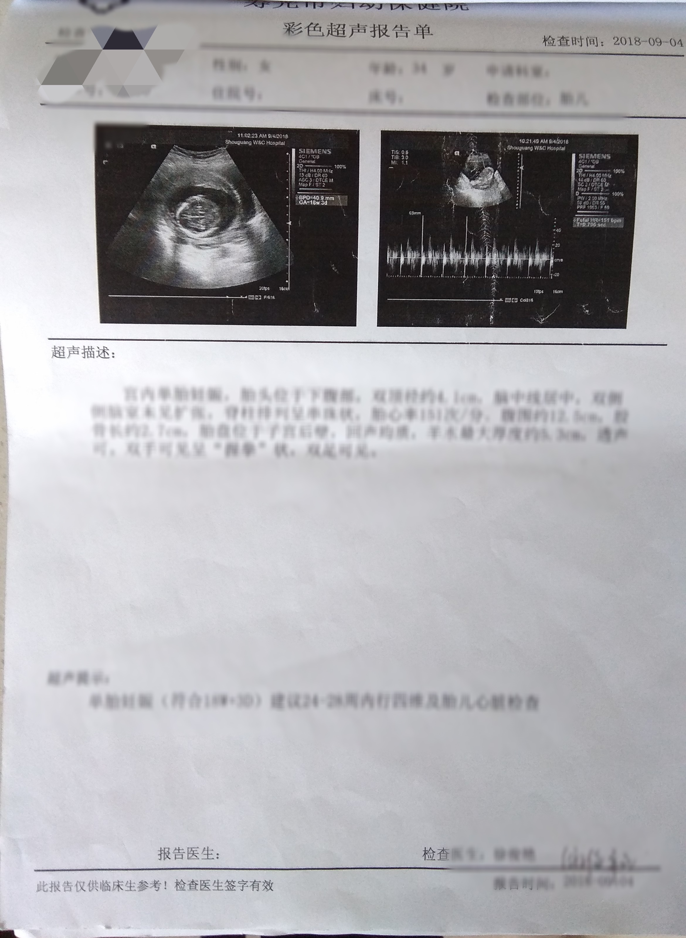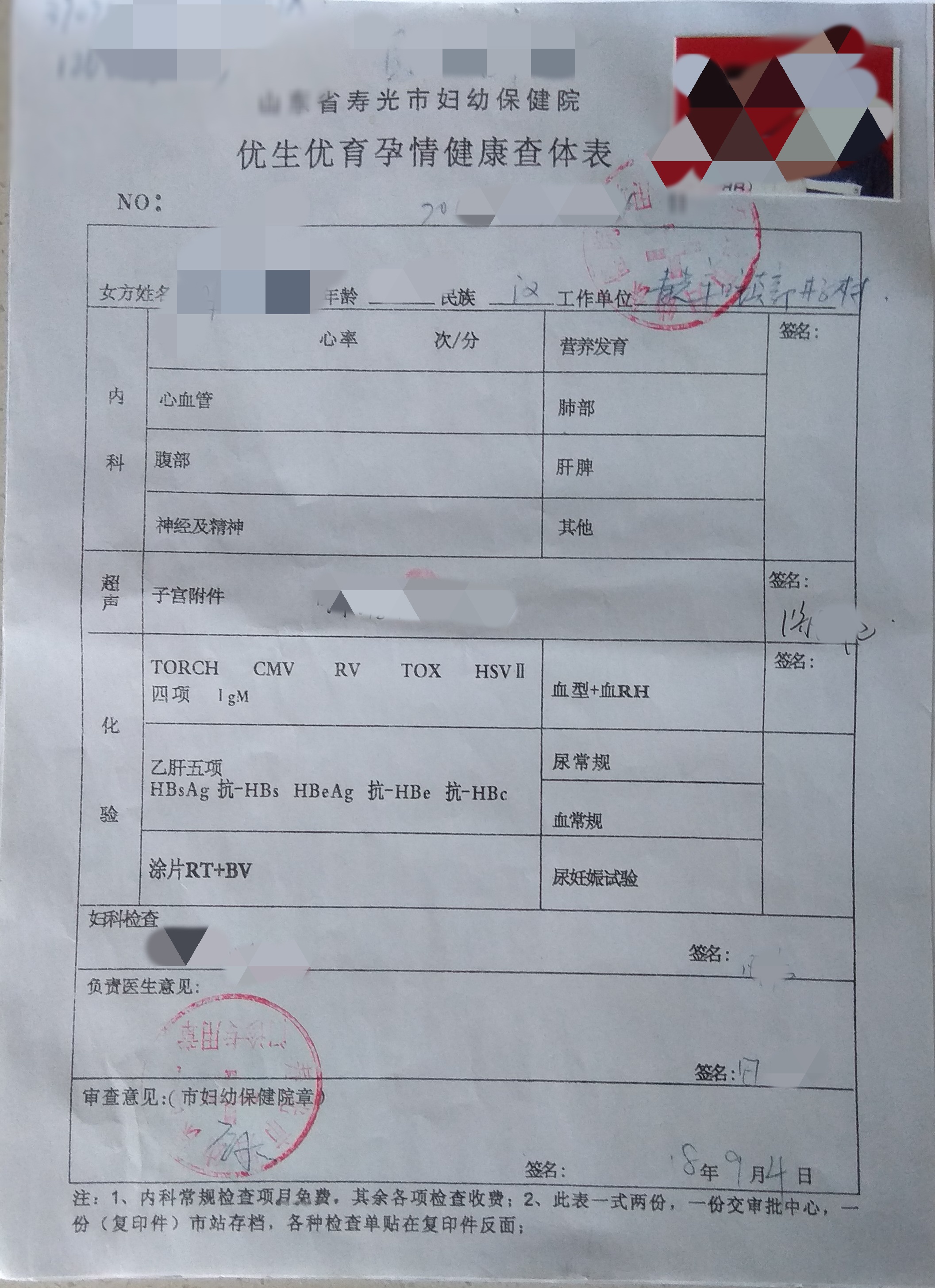 查体完成后,需要带回 1张优生优育健康查体表、1张彩超单,如下图。
