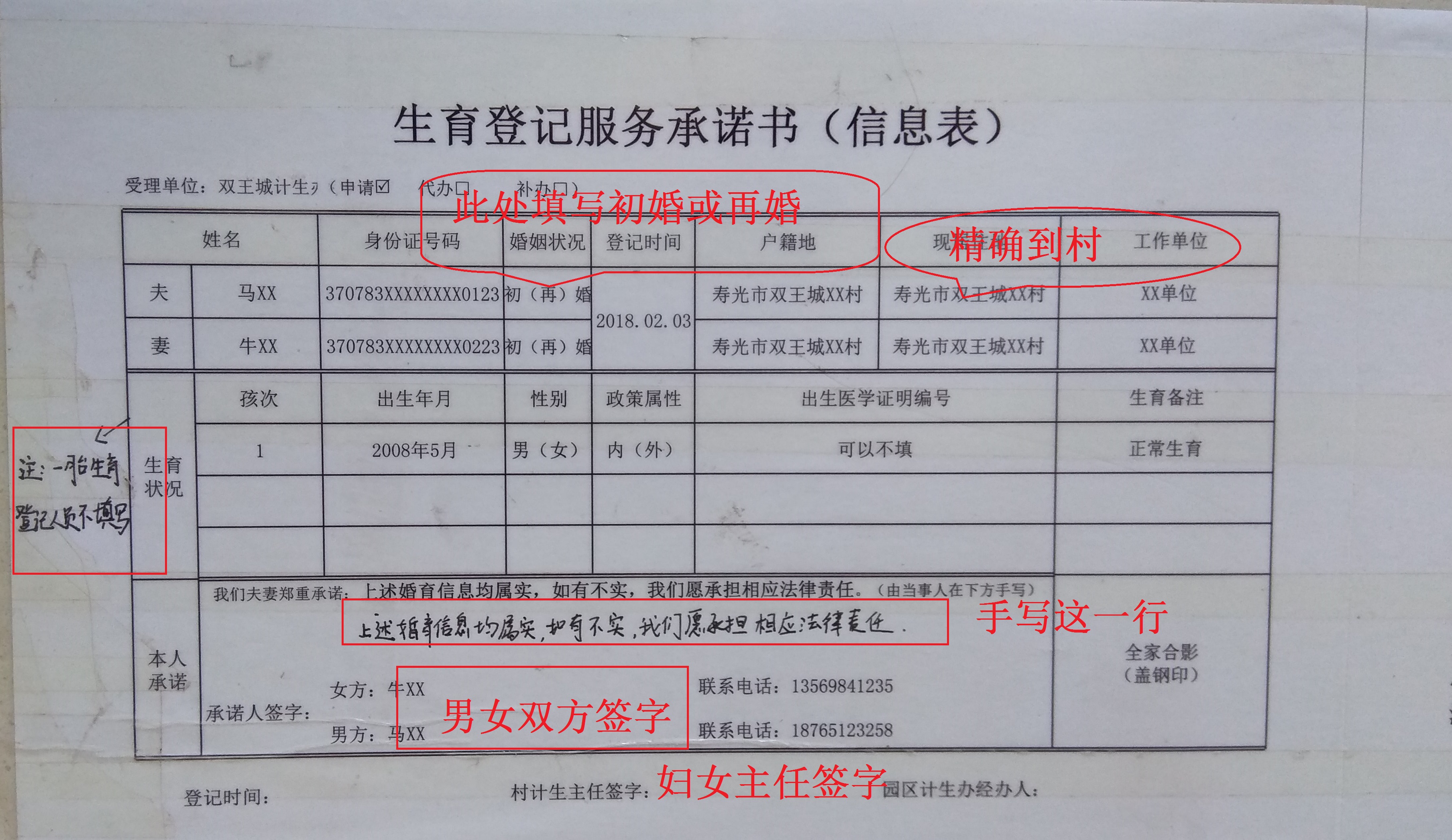6.下载打印并填写生育登记服务承诺书(夫妻双方本人签字及妇女主任(牛头镇村需要分村、总村妇女主任)签字)